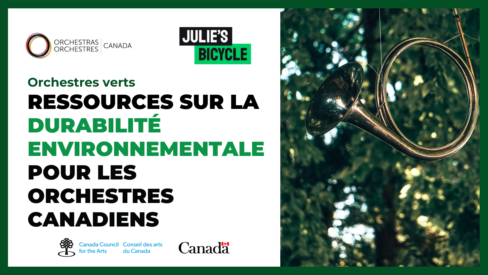 Orchestras Canada, en partenariat avec Julie’s Bicycle, a publié deux ressources essentielles conçues pour soutenir la durabilité environnementale dans le secteur orchestral canadien : « La durabilité environnementale pour les orchestres canadiens : un guide pratique » et la « Charte de durabilité environnementale pour les orchestres canadiens ». Visionnez la vidéo du webinaire de lancement ici.